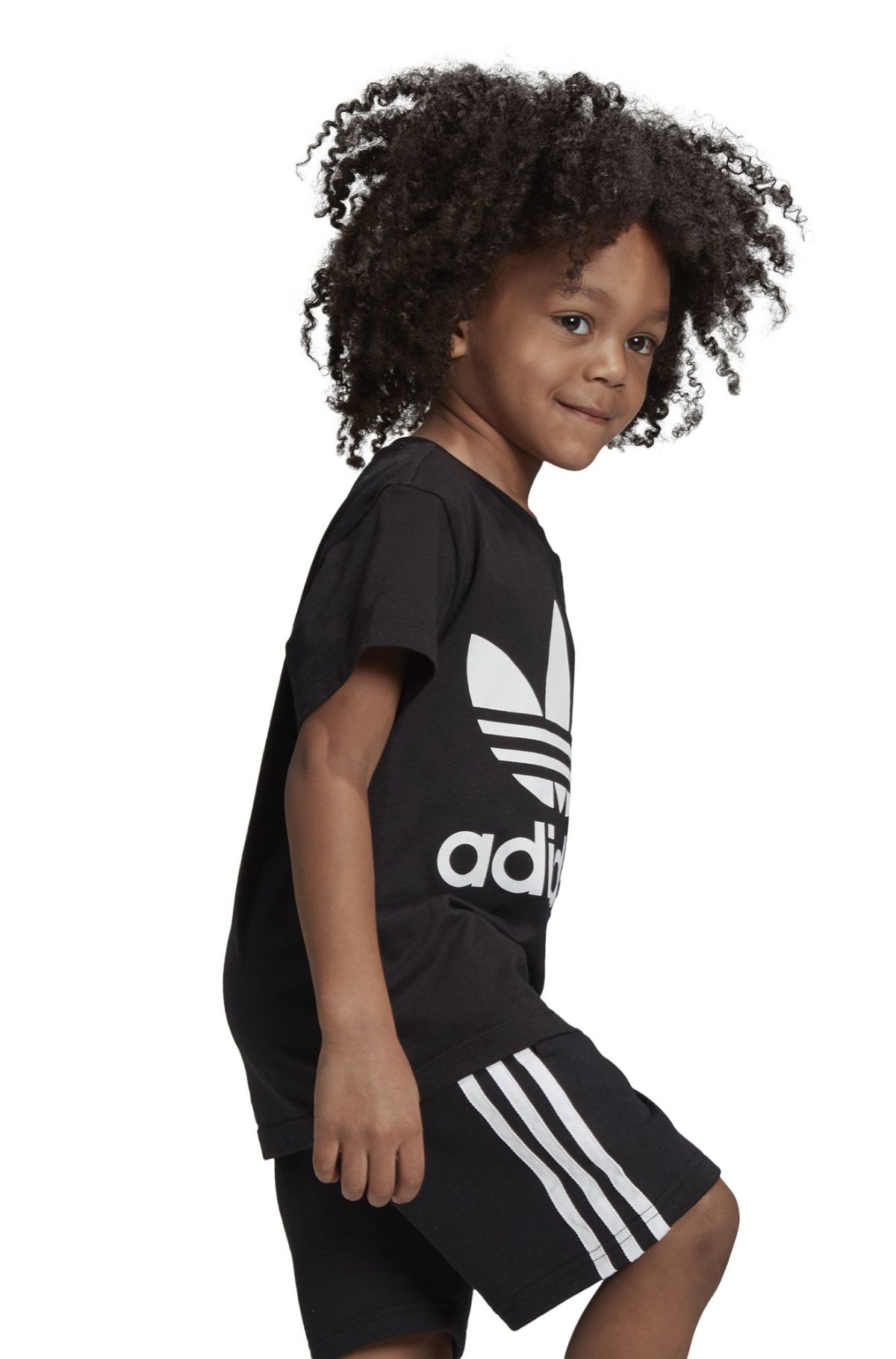 Adidas originals trefoil t-shirt παιδικό σε μαύρο χρώμα μεγάλο λογότυπο των adidas Originals. Eχει κανονική εφαρμογή που διατηρεί τέλεια ισορροπία μεταξύ φαρδιάς και στενής γραμμής, Rib στρογγυλή λαιμόκοψη και κοντά μανίκια.