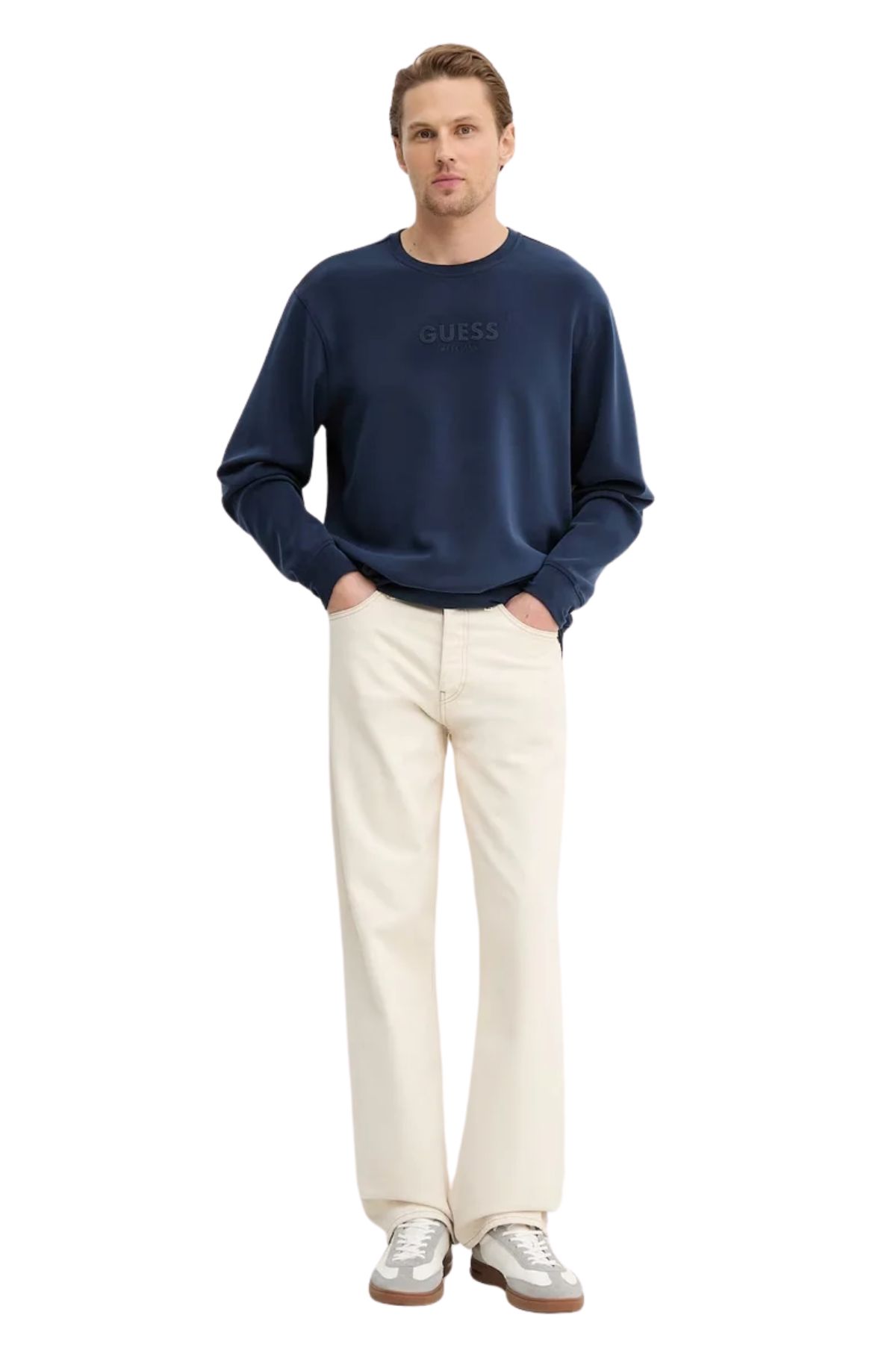 Η ανδρική μπλέ μπλούζα Guess με μακριά μανίκια Scuba Luxe και στρογγυλή λαιμόκοψη M6RQ42KAYM2-G7DC είναι ένα από τα πιο αποκλειστικά κομμάτια της συλλογής “Scuba Luxe”, επαναπροσδιορίζοντας τη σύγχρονη street μόδα με πολυτελείς πινελιές. Γνωστή για την ιδιαίτερη απαλή υφή και τη δομική της μορφή, η τεχνολογία υφάσματος Scuba δίνει σε αυτή την μπλούζα μια πολύ πιο κομψή, καθαρότερη και πιο premium εμφάνιση από τα τυπικά βαμβακερά μοντέλα. Συνδυάζοντας τη ματ κομψότητα του μπλέ (G7DC) με την άνεση του τεχνολογικά προηγμένου υφάσματος, αυτό το μοντέλο αποτελεί την τέλεια βάση τόσο για αθλητικά όσο και για ημιεπίσημα ντυσίματα.