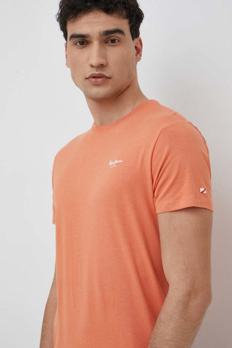 Ανδρικό T-shirt με κοντό μανίκι της εταιρίας Pepe Jeans σε πορτοκαλί χρώμα, για casual εμφανίσεις.
