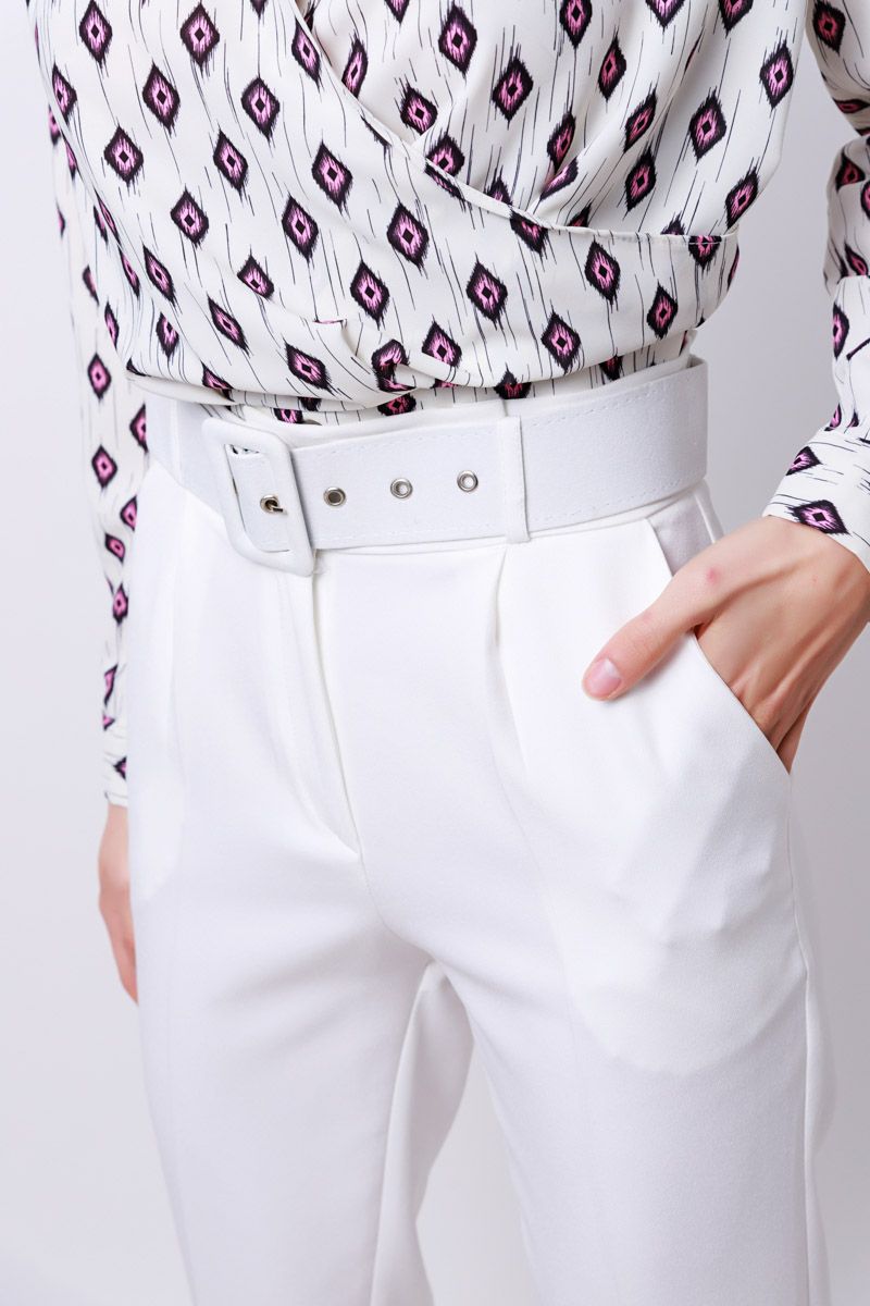 Fibes Fashion Γυναικείο Παντελόνι 04-2057P Λευκό