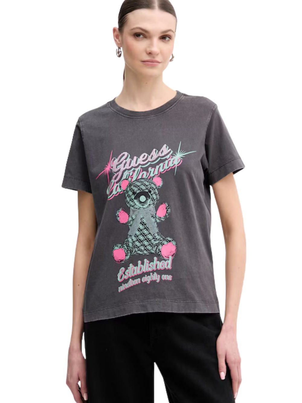 Guess Γυναικείο Αμανικο T-Shirt W6RP10KC812-FJBQ Μαύρο